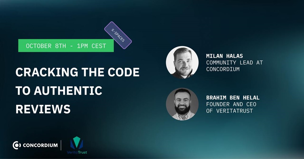 Concordium will host an AMA on X with Milan Halas, the community lead,, who is involved in web3 marketing, and Brahim Ben Helal, the CEO and co-founder of VeritaTrust. The discussion will focus on how VeritaTrust employs blockchain and AI technologies to improve trust and transparency in e-commerce by providing authentic, verifiable reviews.