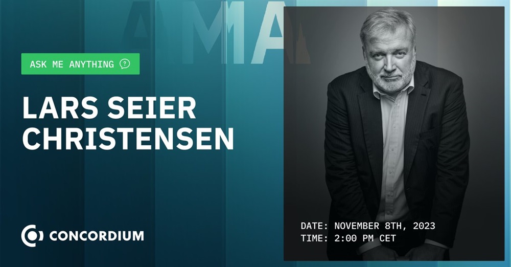 Concordium will host an AMA on YouTube with its founder, Lars Seier Christensen on November 8th at 13:00 UTC.