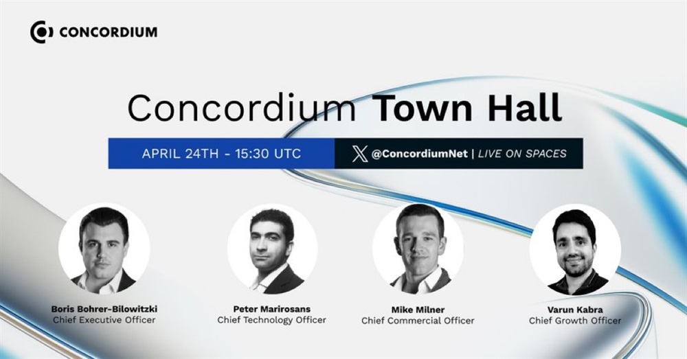 Concordium will host a community call on X on April 24th at 15:30 UTC. The meeting will focus on the company’s commercial and strategic position in the PayFi space. The CEO Boris Bohrer-Bilowitzki and CCO Mike Milner will discuss topics such as stablecoins and ecosystem partners, and provide key updates.