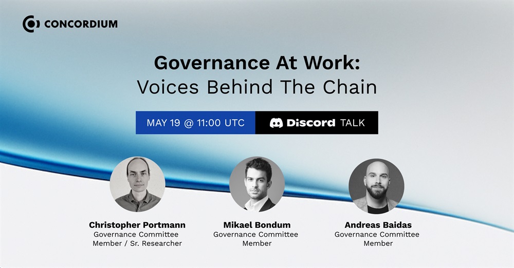 Concordium will conduct an online discussion on Discord on its 2025 Governance Committee elections on May 19th at 11:00 UTC. Governance Committee members Mikael Bondum and Andreas Baidas are scheduled to outline the nomination process and subsequent election timeline.