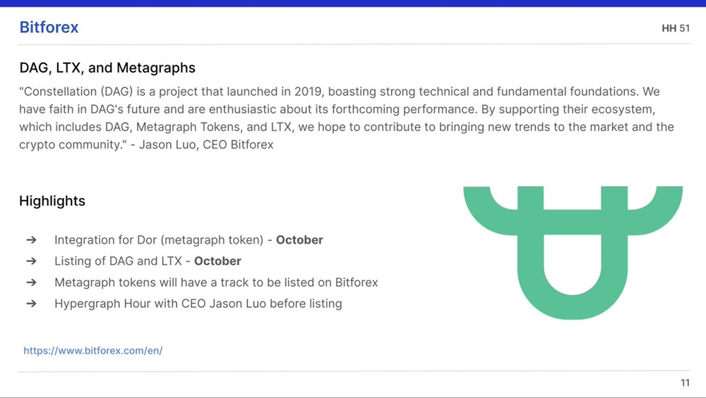 BitForex will list Constellation (DAG) in October.