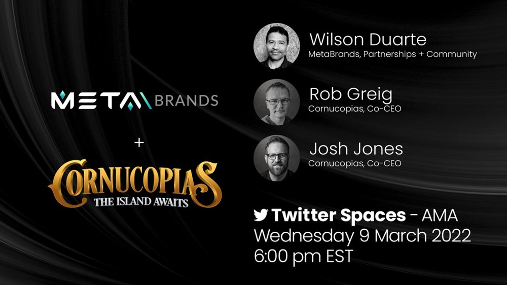 Our Co-CEOs, Rob and Josh are taking part in a live AMA over at @MetaBrandsio on Wednesday, 3/9/2022! 🤠🤟