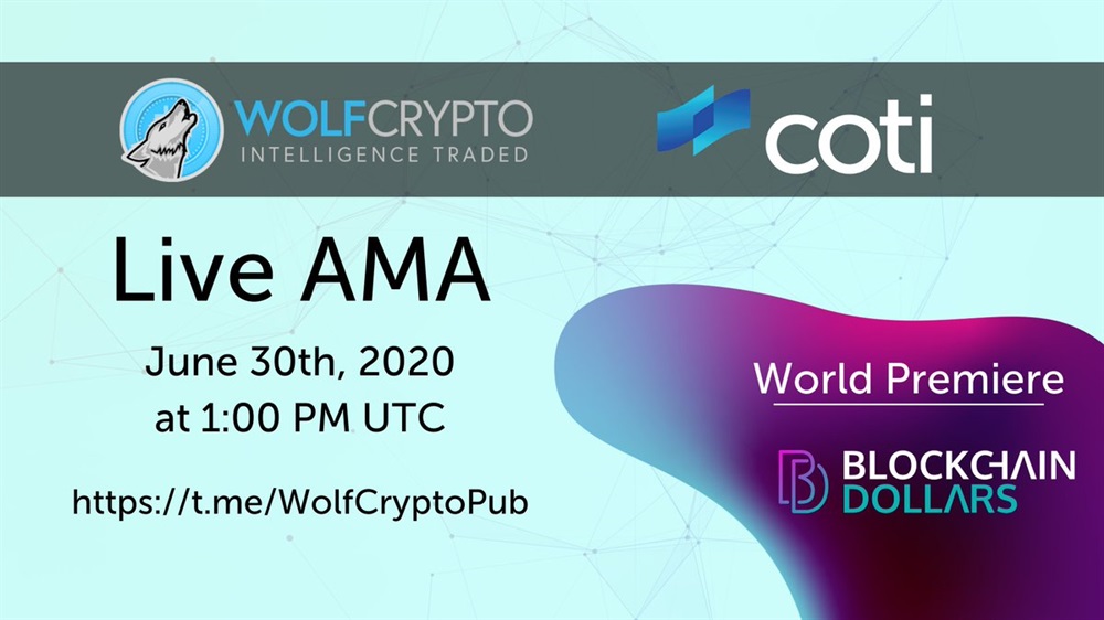 Curious about Blockchain Dollars? COTI will reveal it for the first time during an AMA with Wolf Crypto, on June 30th at 1pm UTC.
