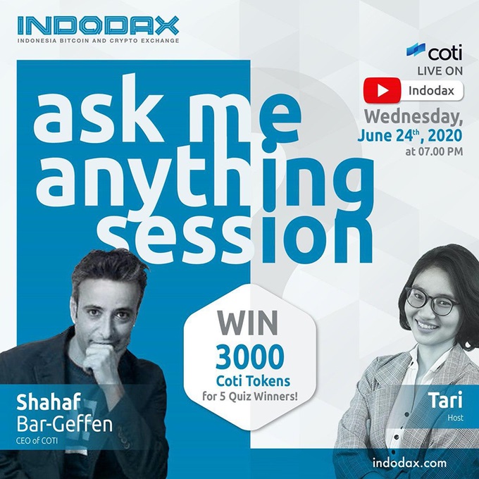 Join COTI for a live AMA with Indodax in their official Youtube channel.