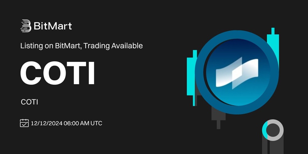 BitMart will list COTI (COTI) under the COTI/USDT trading pair on December 12th.