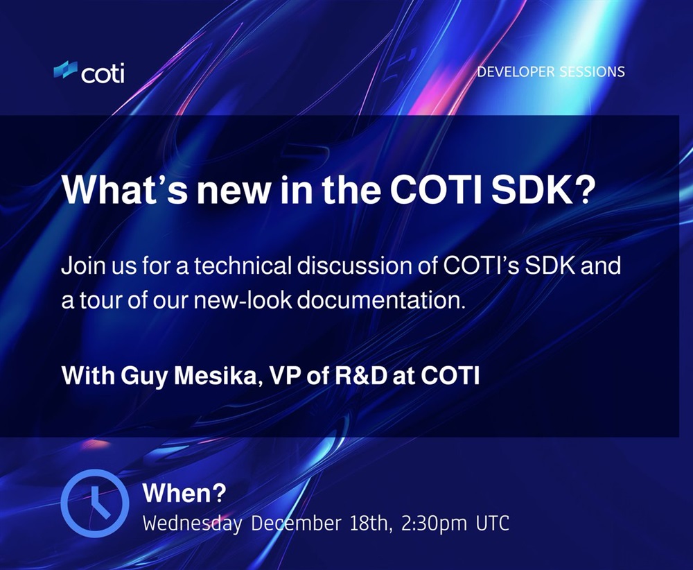 New Developer Session! Dive into COTI's #SDK with VP of R&D Guy Mesika.