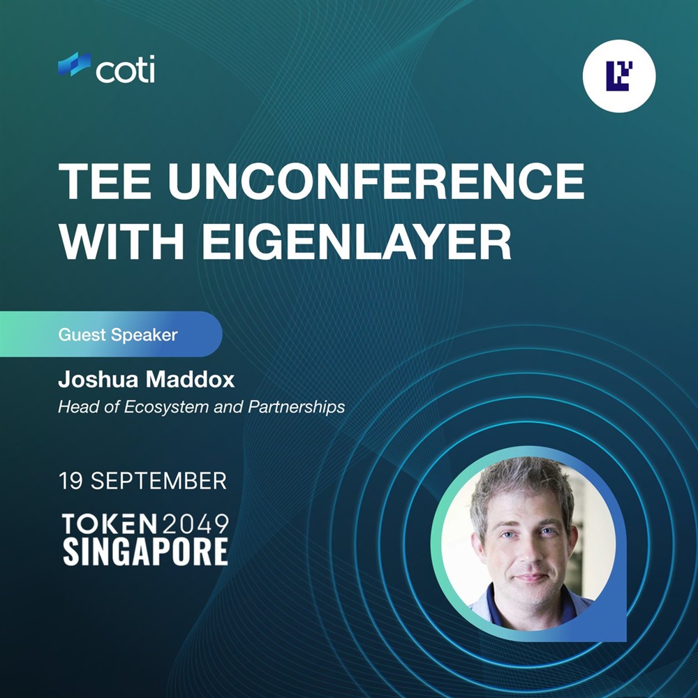 COTI is set to participate in the upcoming TEE Unconference at TOKEN2049 in Singapore on September 19th. The event is being hosted by Automata Network & EigenLayer. Joshua Maddox, who serves as the head of ecosystems and partnerships at COTI, will be a part of the panel discussion titled “Real-world cryptography: From code to scale”.