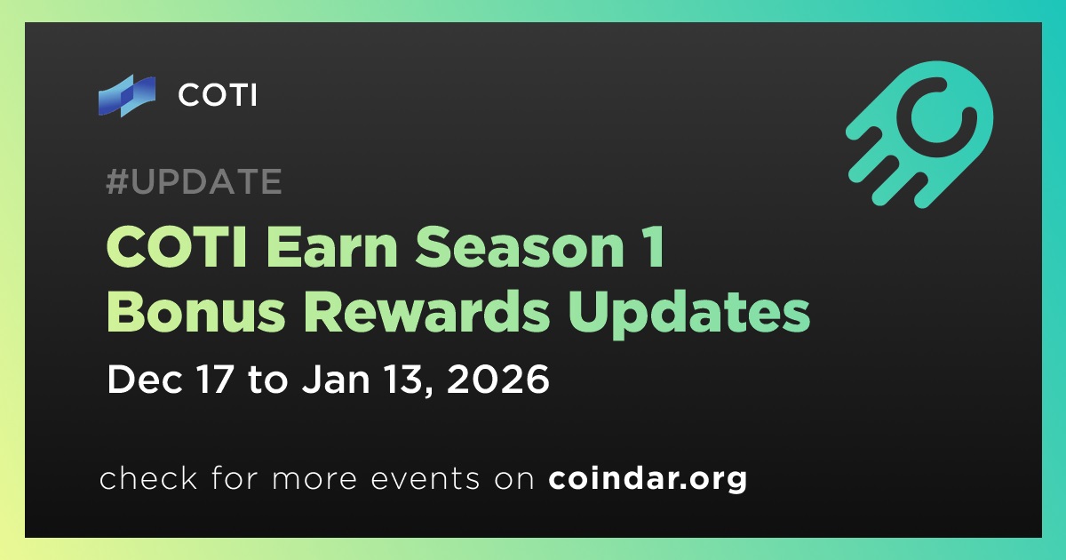 COTI Updates COTI Earn Season 1 Bonus Rewards