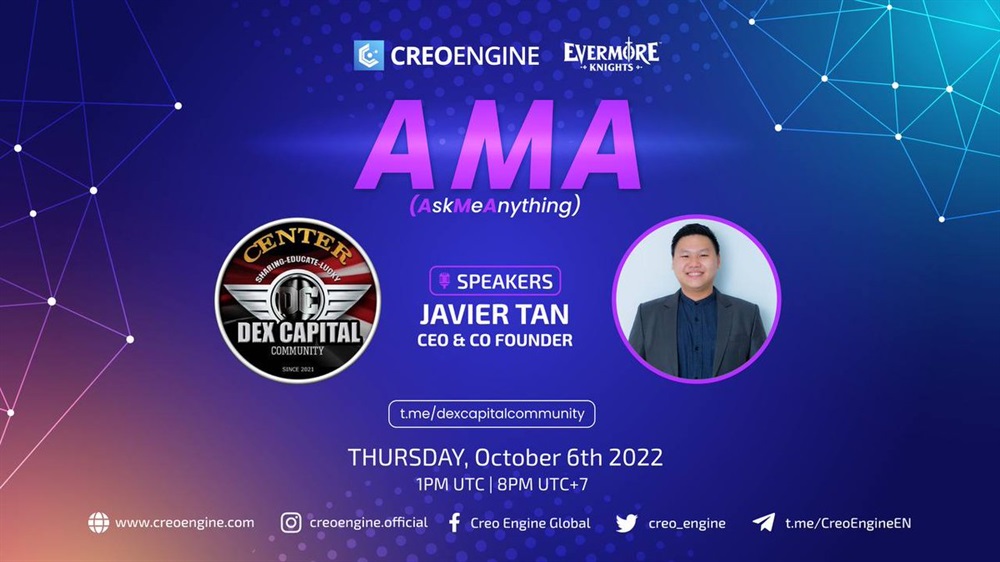 Creo Engine will be attending AMA session on DEX CAPITAL (6/10) discussing everything you want to know about Evermore Knights and CreoPlay