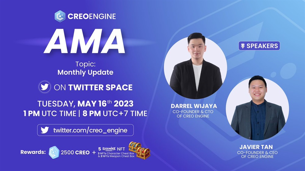 Stay tuned for this AMA with @darrel_wijaya & @JavierTanCREO , discussing our monthly updates with rewards waiting. See you there!