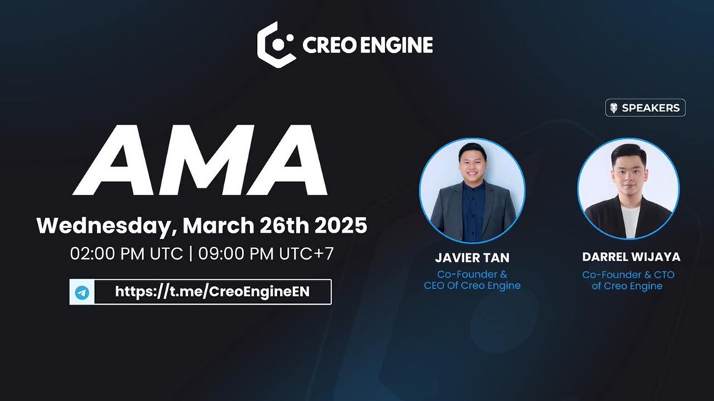 Creo Engine will hold a community call on March 26th, featuring CEO Javier Tan and CTO Darrel Wijaya. They will share the latest updates on development progress, ongoing events, and upcoming plans.