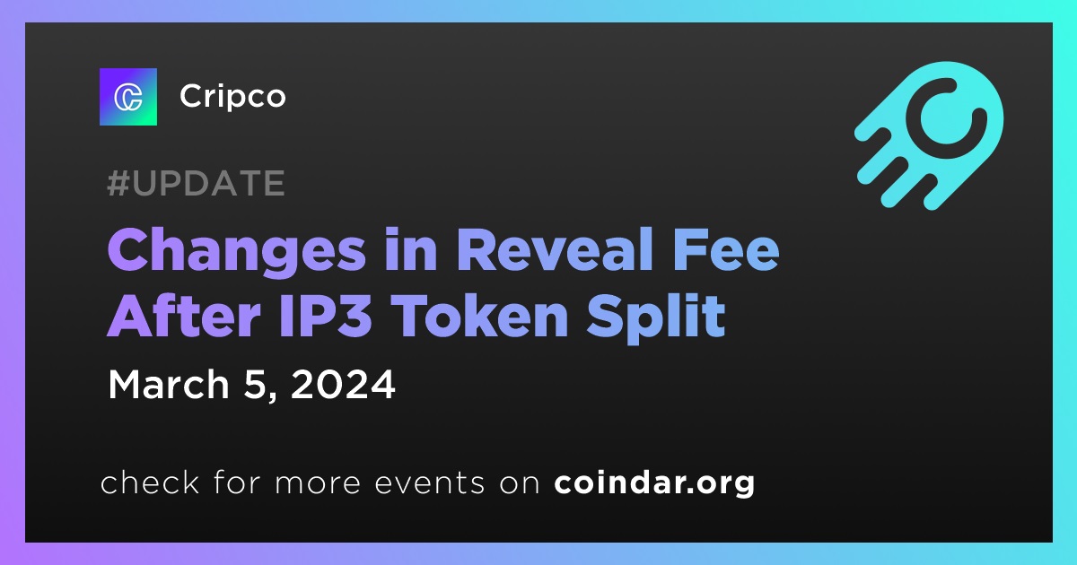 The post-split reveal service fee is hereby set at 9,450 new $IP3 tokens (which is equivalent to 135 old $IP3)