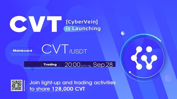 @CyberVeinGroup will be listed on #MXC_Exchange, and the trading for $CVT/USDT pair will be opened at 20:00 UTC+8, Sep.28.