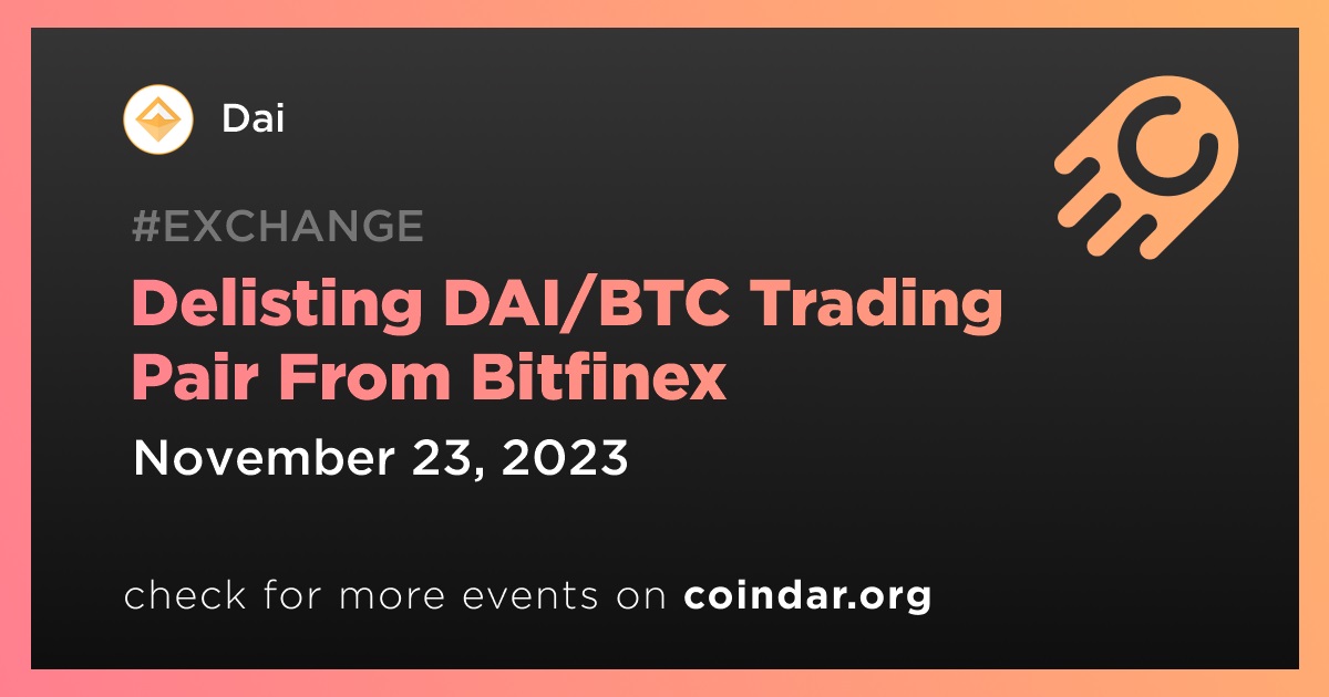 Bitfinex will delist DAI/BTC trading pair from Bitfinex on November 23rd.