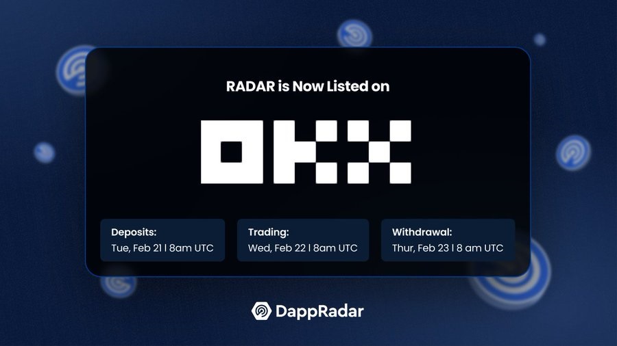 Starting today at 8:00am UTC, DappRadar’s RADAR token is available for spot trading on @OKX.