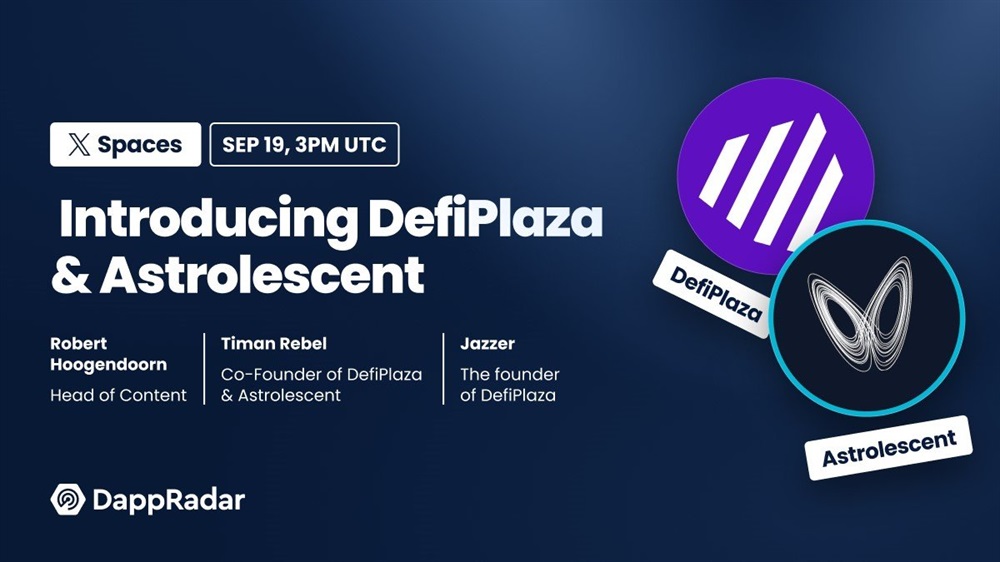 DappRadar will host an AMA on X with DefiPlaza and Astrolescent on September 19th. The discussion will be led by the head of content at DappRadar Robert Hoogendoorn.