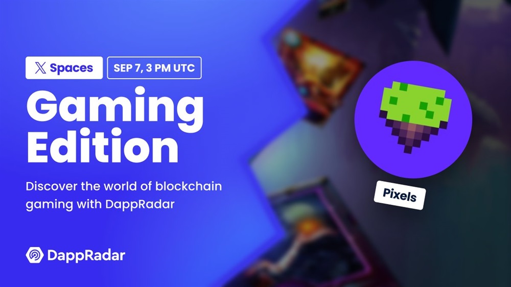 DappRadar will host an AMA on X on September 7th. The session will feature Robert Hoogendoorn, and Luke Barwikowski, the founder of the “play-and-earn” game Pixels.