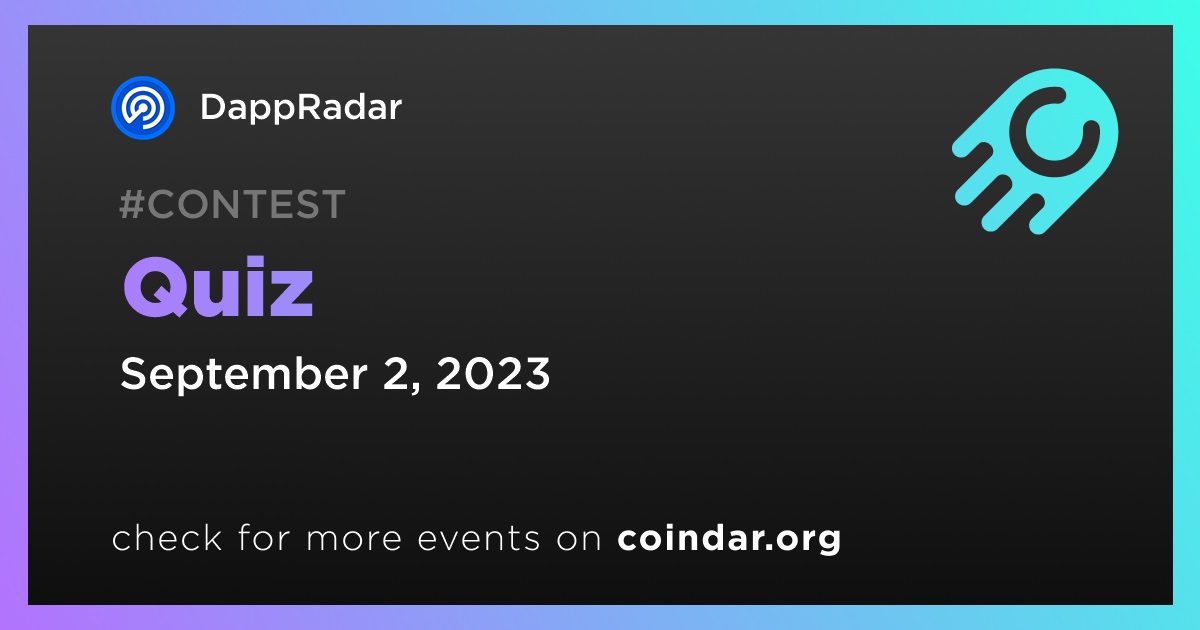 DappRadar will host a weekly quiz on Discord. The event will take place on September 2nd at 14:00 UTC.