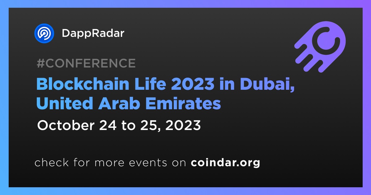 DappRadar’s VP of engineering, Michael Ionita, is scheduled to speak at the Blockchain Life 2023 event. The event is set to take place in Dubai in October 24th-25th.