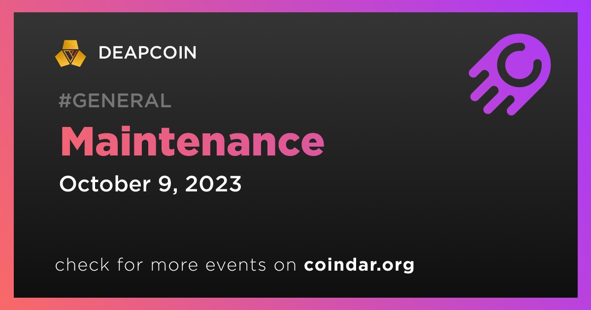 DEAPCOIN to Conduct Scheduled Maintenance on October 9th