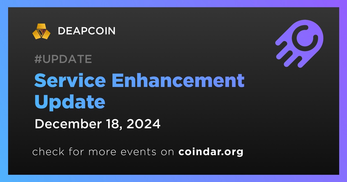 DEAPCOIN to Release Service Enhancement Update on December 18th