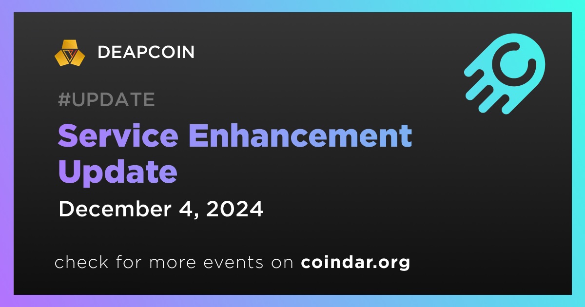 DEAPCOIN has scheduled the next service enhancement update for December 4th.