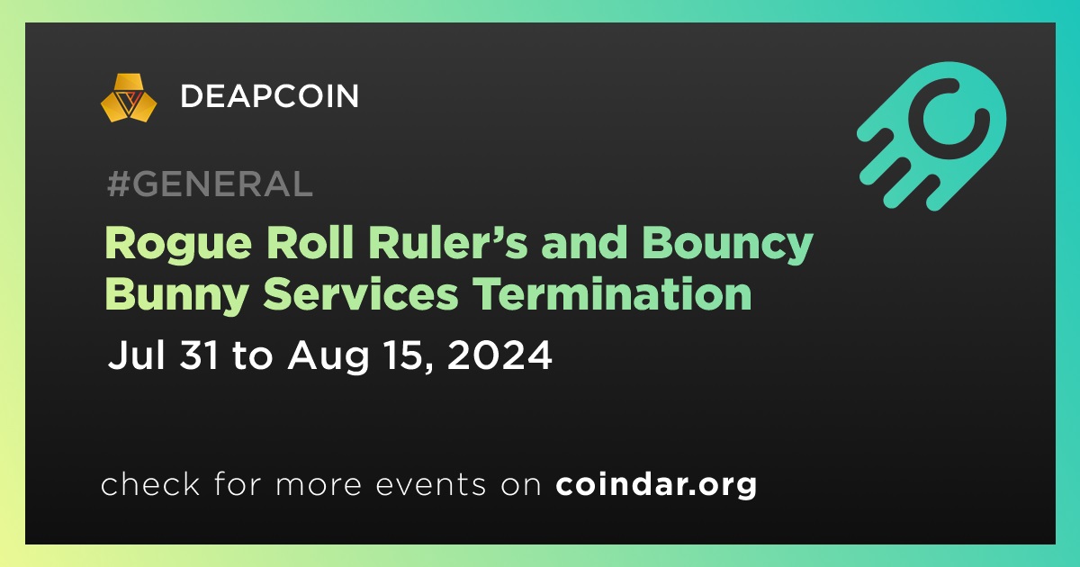 DEAPCOIN has announced that the services for “Rogue Roll Ruler’s” and “Bouncy Bunny” will be discontinued. The termination of these services is due to the decision made by the provider. The discontinuation will take place from July 31st to August 15th.