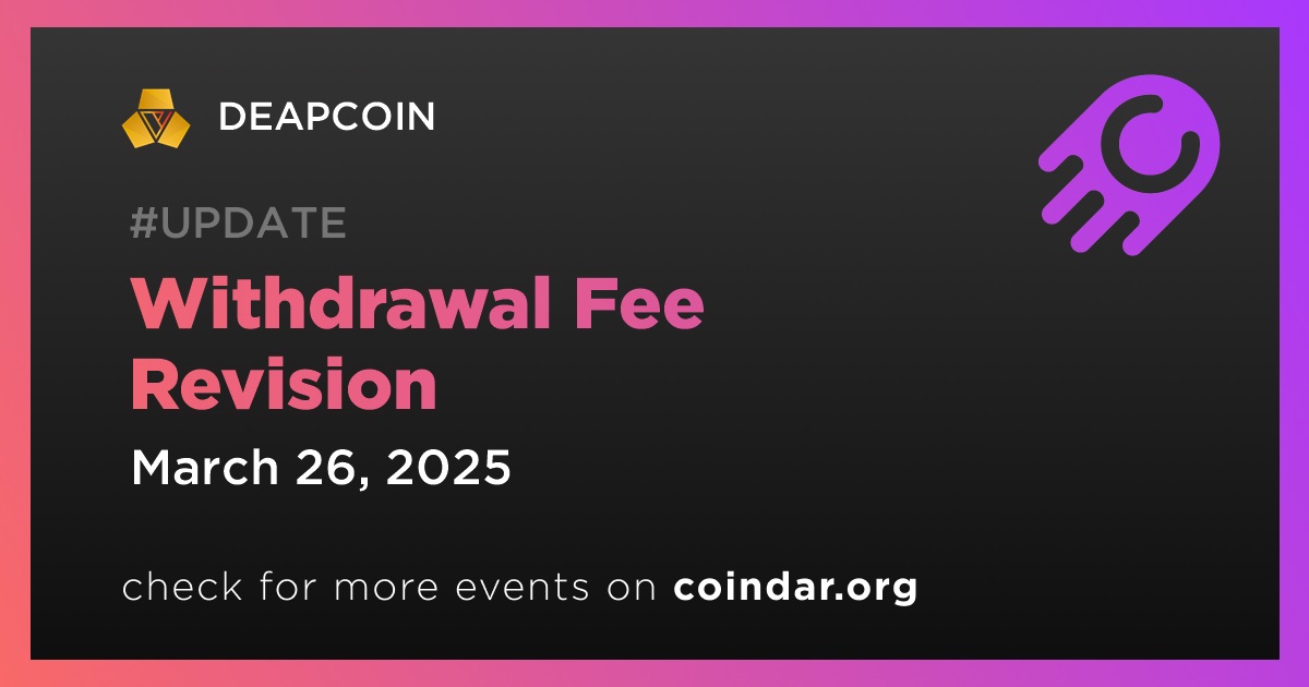 DEAPCOIN will host the next revision of its external withdrawal fee on March 26th.