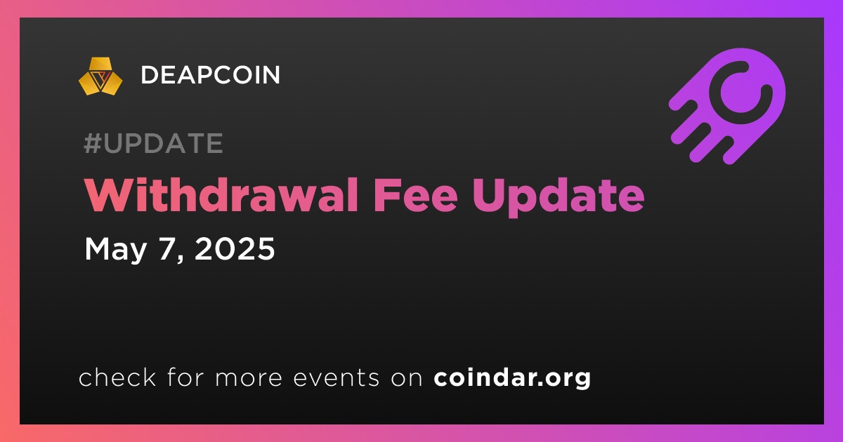 DEAPCOIN to Update Withdrawal Fee on May 7th