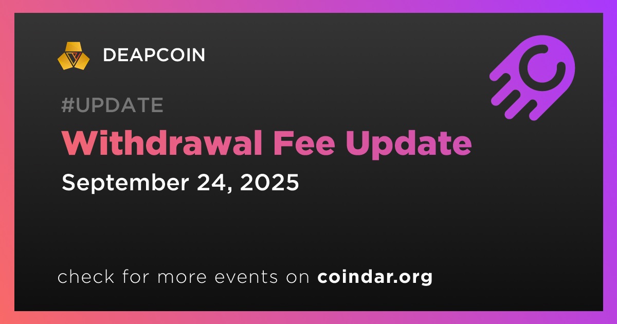 DEAPCOIN to Update Withdrawal Fee on September 24th