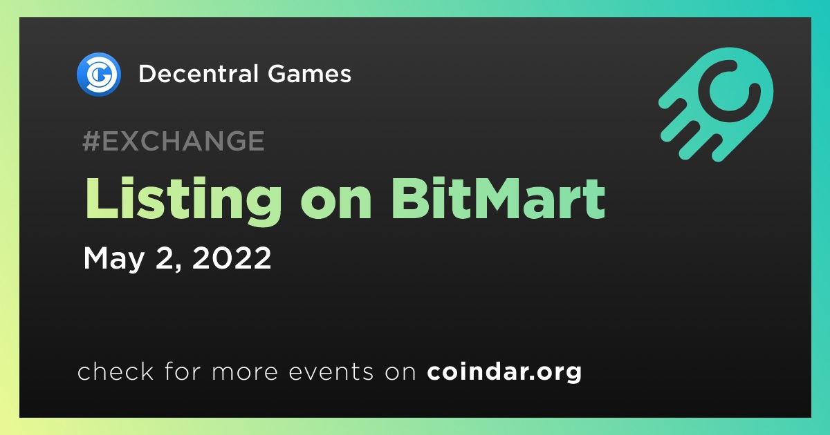 BitMart will be the 3rd largest among the exchanges where Decentral Games is listed