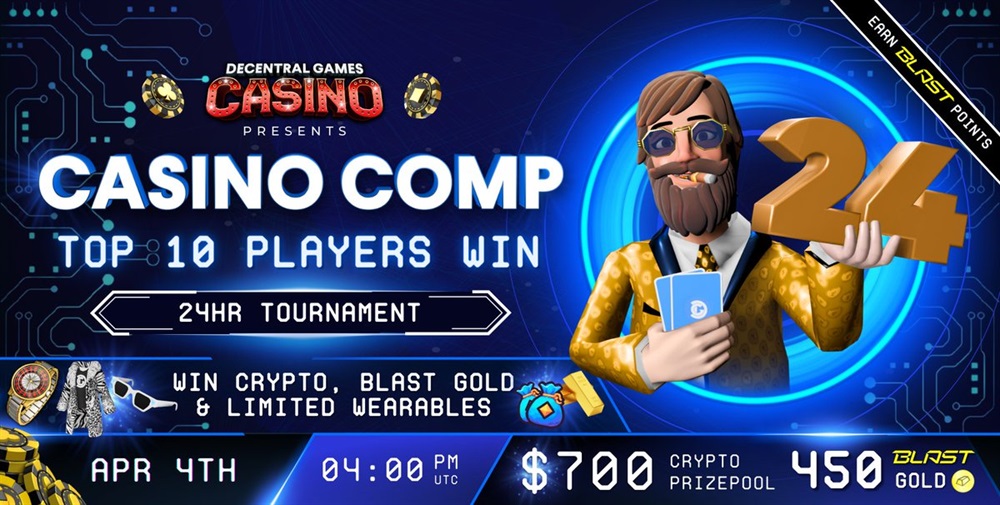Decentral Games is set to host its largest 24-hour casino competition on April 4th-5th. A total of 450 BLAST GOLD is available to be won during this competition. The top 10 players on the leaderboard will be declared as winners. The first-place winner will receive 90k BAG.