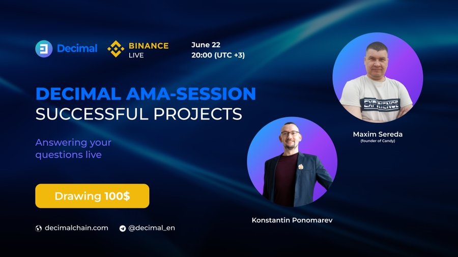 Decimal will have an AMA on Binance Live on the 22nd of June