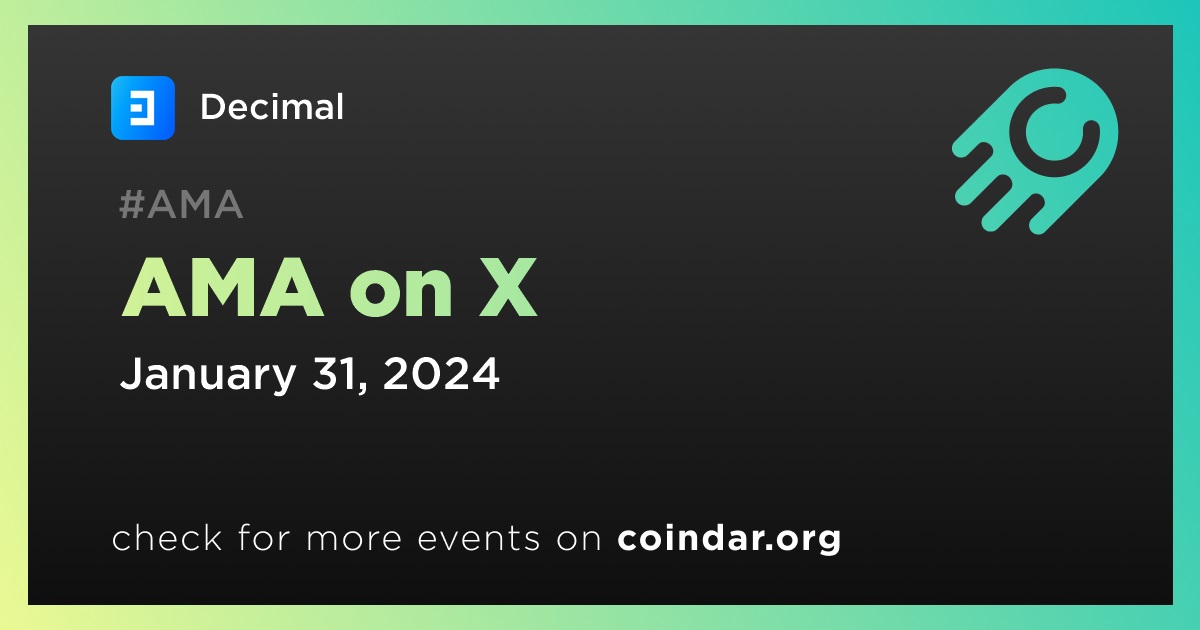 Decimal will host an AMA on X on the 31st of January at 1:30 PM UTC. The event will cover the latest updates and developments within the Decimal ecosystem.