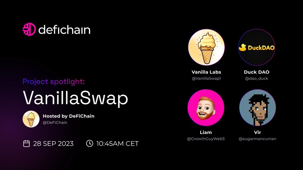 DeFiChain is set to host a community call on X, focusing on a project spotlight of Vanilla Labs on September 28th at 8:45 UTC.