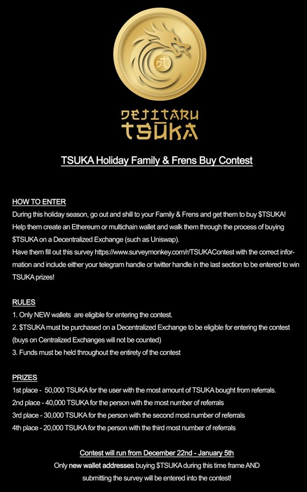 $TSUKA Sangha! Spread some Holiday Cheer with the #TSUKA Family & Frens Buy Contest!
