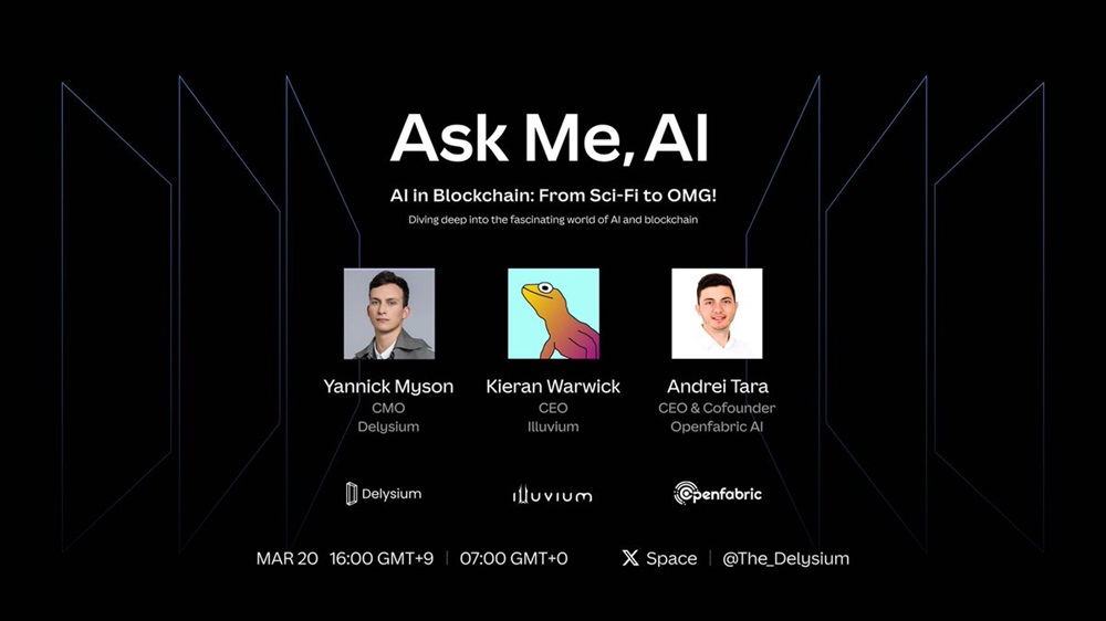 Delysium will host an AMA on X on March 20th at 7:00 UTC. The event will feature discussions on the latest trends and breakthroughs in AI, Web3, and Blockchain.