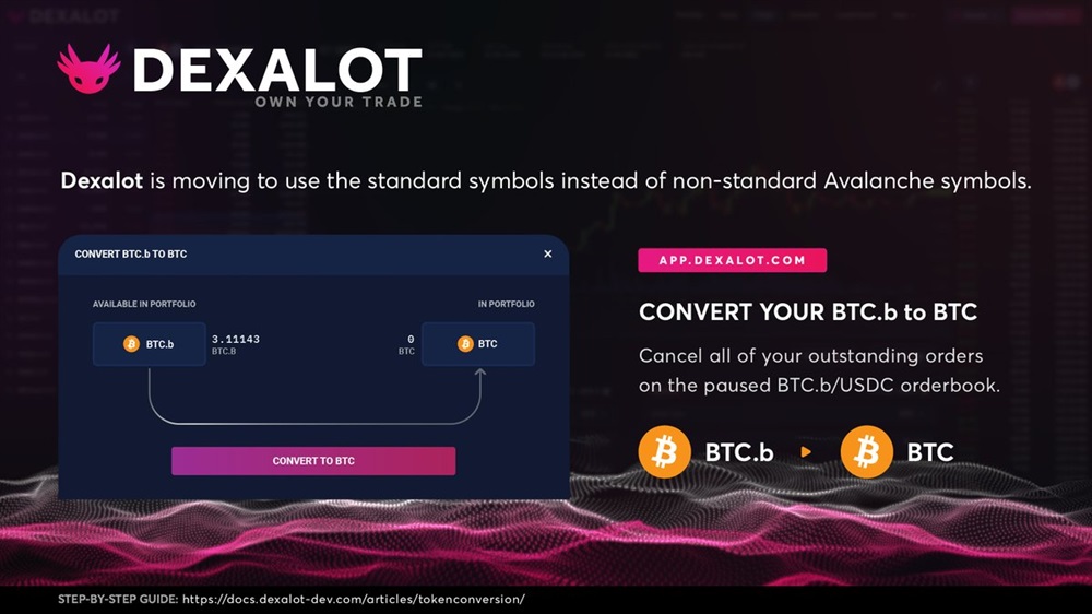 Dexalot is going multi-chain! starting april 15, you can now convert BTC.b to BTC. Standardized symbols mean easier trading on the Dexalot Subnet.