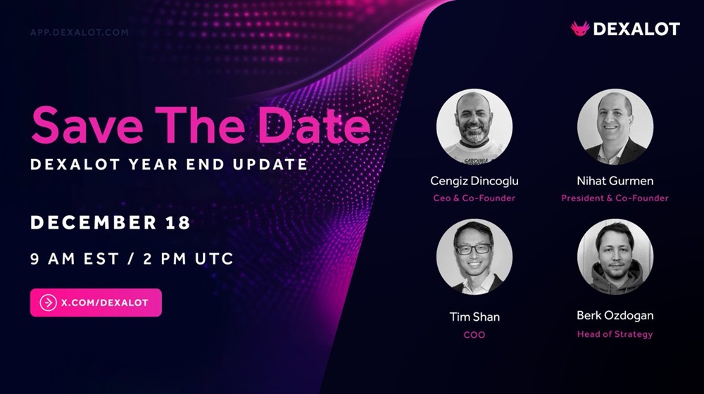 Dexalot will host an AMA on X on December 18th at 10:00 UTC. The event will feature Dexalot’s notable co-founders Nihat Gurmen and Cengiz Dincoglu. They are set to review the year’s achievements and disclose their plans for the coming period.