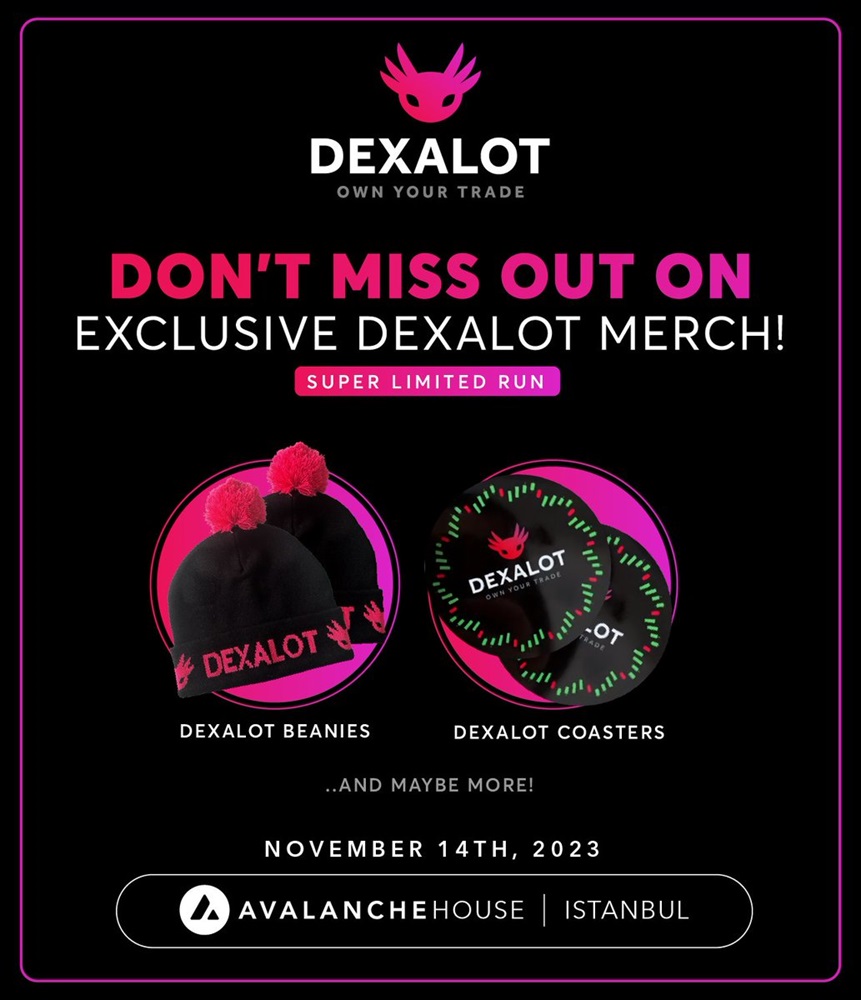 Dexalot will participate in the Avalanche House event in Istanbul on November 14th. The Dexalot team will be present at the event and they will be bringing along exclusive merchandise which will be distributed on a first-come, first-serve basis.