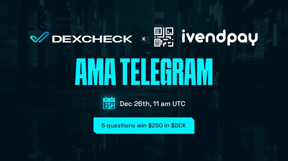 DexCheck will host an AMA on Telegram with ivendPay on December 26th at 11 am UTC. The AMA will provide an opportunity for participants to learn more about ivendPay’s market plans and their upcoming listing plans.
