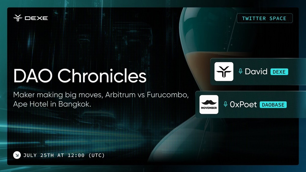 DeXe will host an AMA on X on July 25th at 12:00 UTC. The discussion will be sharing the latest statistics, news, and proposals related to DAO.