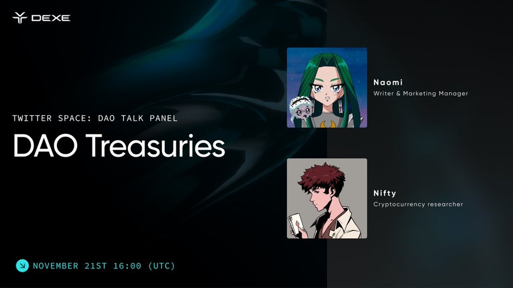 DeXe will host an AMA on X on November 21st at 16:00 UTC. The panelists will delve into the topic of tokens held by DAO treasuries and the strategies they employ to enhance their growth.