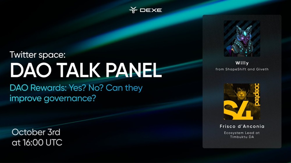 DeXe will host an AMA on X on October 3rd at 16:00 UTC. The discussion will revolve around the theme “DAO rewards: yay or nay?”