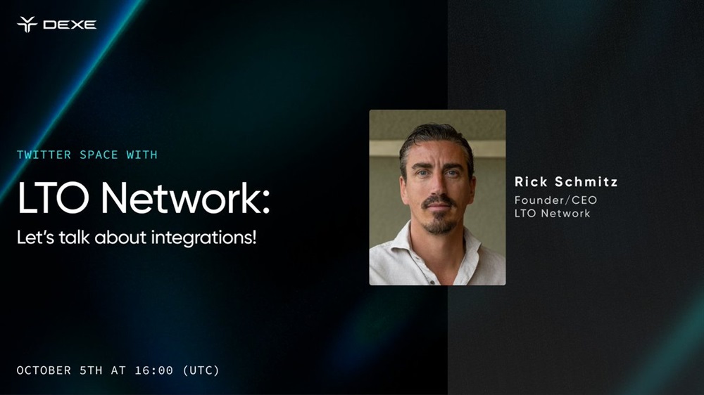 DeXe will host an AMA on X in collaboration with their partners, the LTO Network. The event is scheduled to take place on October 5th at 16:00 UTC. The discussion will be led by Rick Schmitz, the founder and CEO of LTO Network.