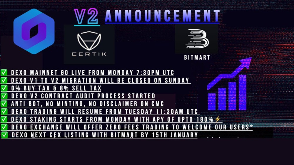📢 DEXO v2 BIG ANNOUNCEMENT FOR A BETTER TOMORROW.
