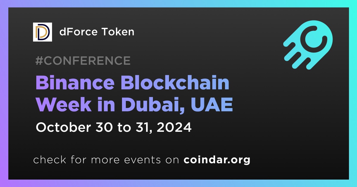 dForce Token will participate at Binance Blockchain Week, taking place in Dubai on October 30-31. The event will offer insights into the dForce ecosystem and its latest developments.
