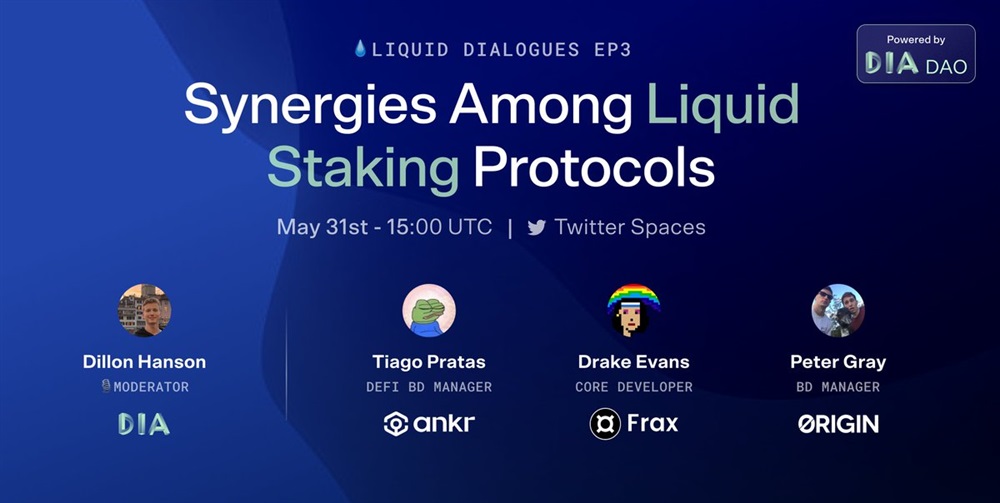 Join @DIACommunityHub for the 3rd episode of #LiquidDialogues next wednesday, where we will discuss the synergies of liquid staking protocols with guests from @ankr, @fraxfinance, and @OriginProtocol.