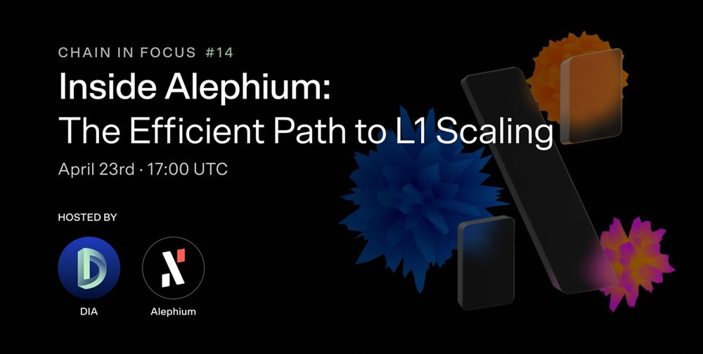 DIA will host an AMA on X on April 23rd at 16:00 UTC. The event will explore Alephium’s efficient approach to Layer 1 scaling, the integration of DIA’s on-chain randomness, and the upcoming Danube network upgrade. The session will feature Maud Bannwart, chief operating officer at Alephium.