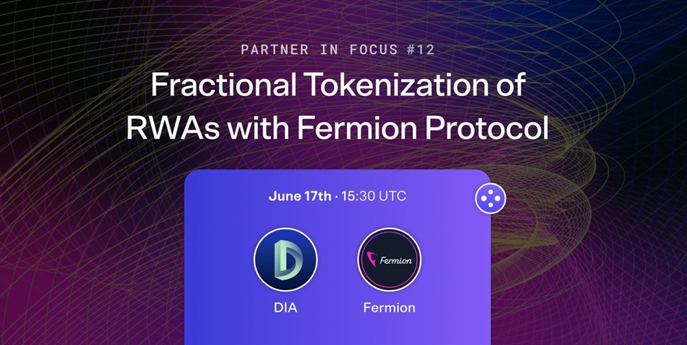 DIA will host an AMA on X with Justin Banon, the founder of Boson Protocol and Fermion Protocol on June 17th. The discussion will focus on the innovative concept of fractional tokenization of real-world assets.